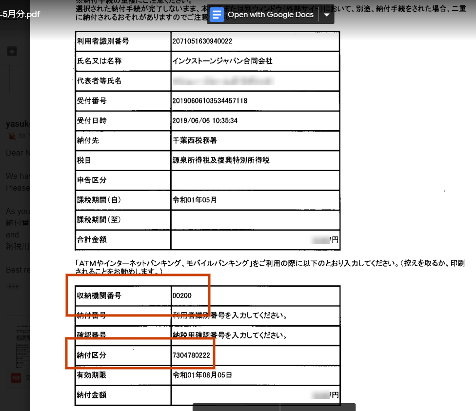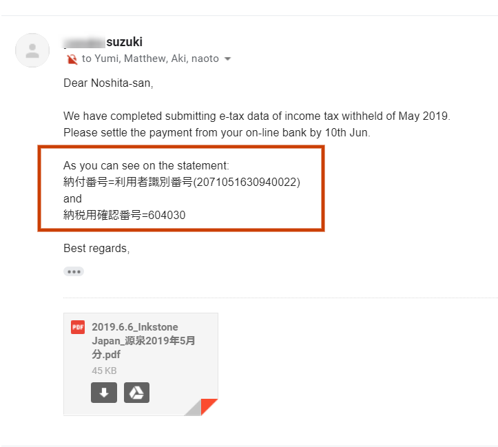 - アカウンタントから e-tax データが送られてきたら、10日までに online で支払を済ます New!