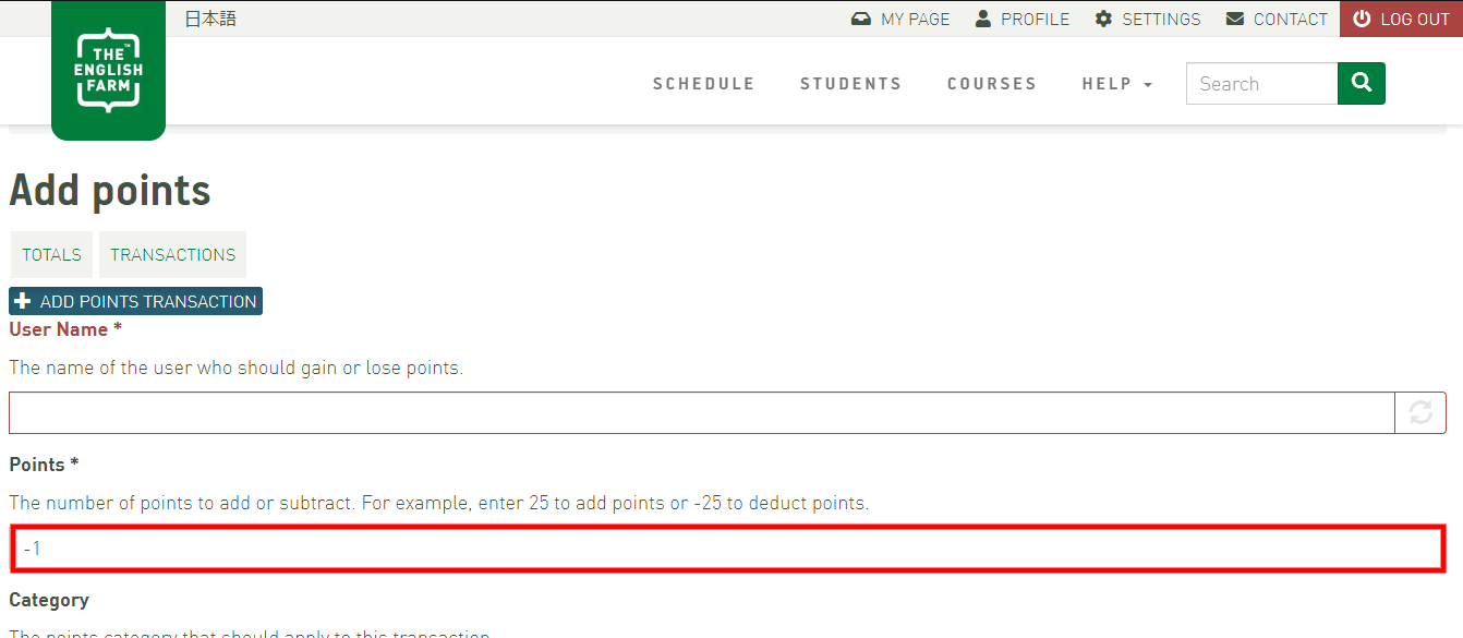 Taking points away Taking points away is easy. Just put a "-" sign in front of the number. Everything else is the same as refunding points. Course content Book traversal links for 9039 ‹ Refunding homework points Up Sales ›