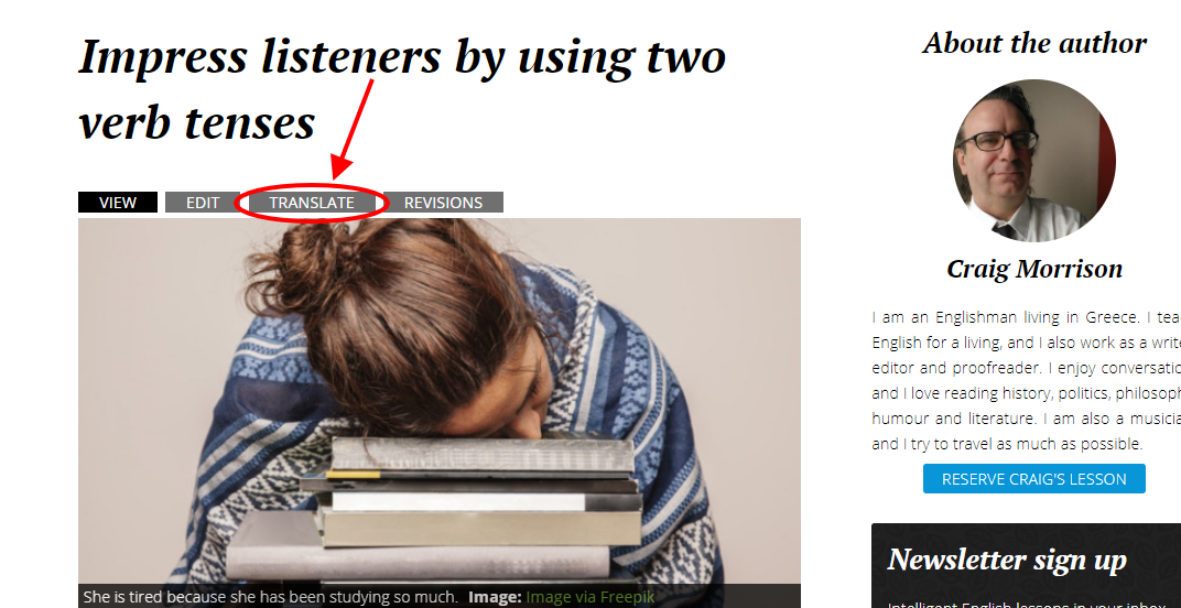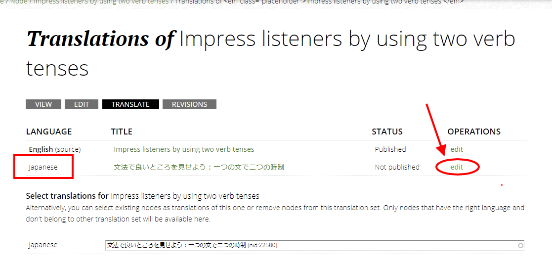 Step 1: Copy the URL of the original English version of whatever you have translated. You only need to copy the part after www.theenglishfarm.com. In this particular case, the part we copied was "blog/impress-listeners-using-two-verb-tenses".